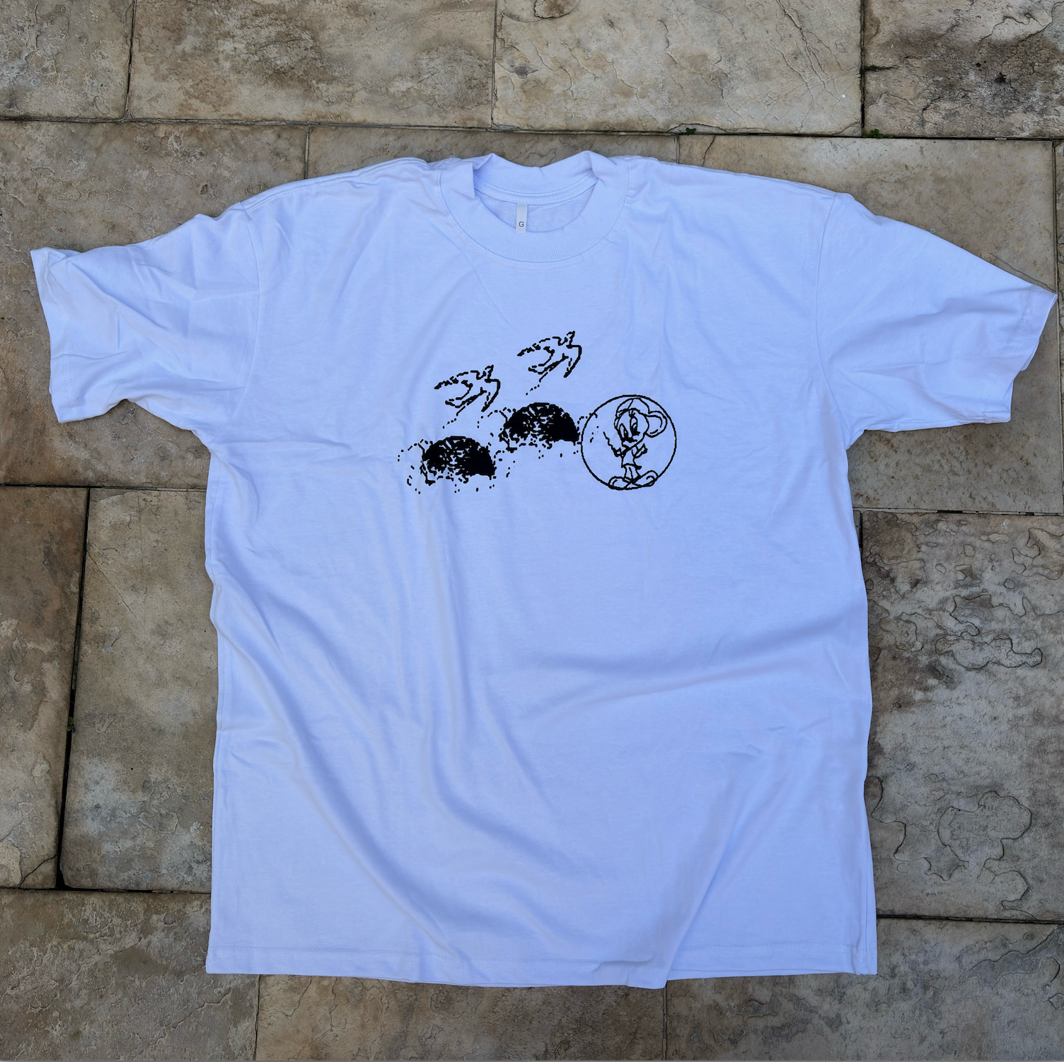 Camiseta "Passários e Ideias" produzida em serigrafia. Cada peça é estampada individualmente à mão.